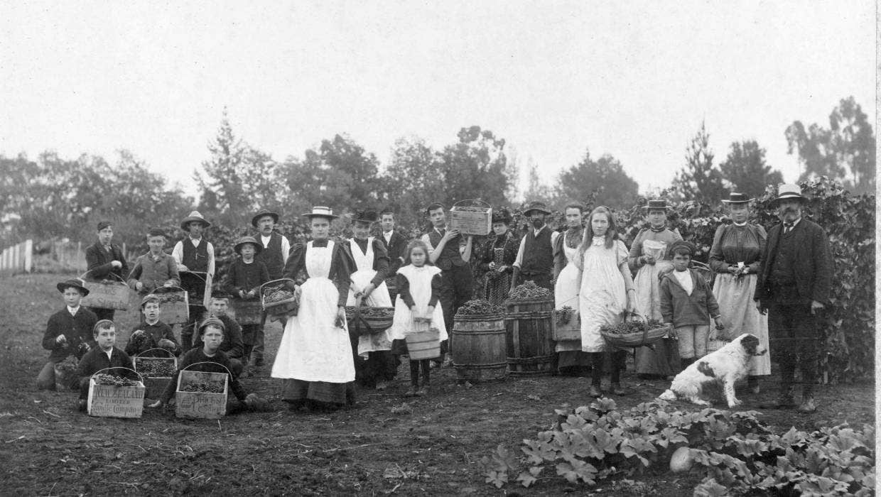 William Beetham (far right) with a group of grape pickers in the Lansdowne vineyards, circa 1898